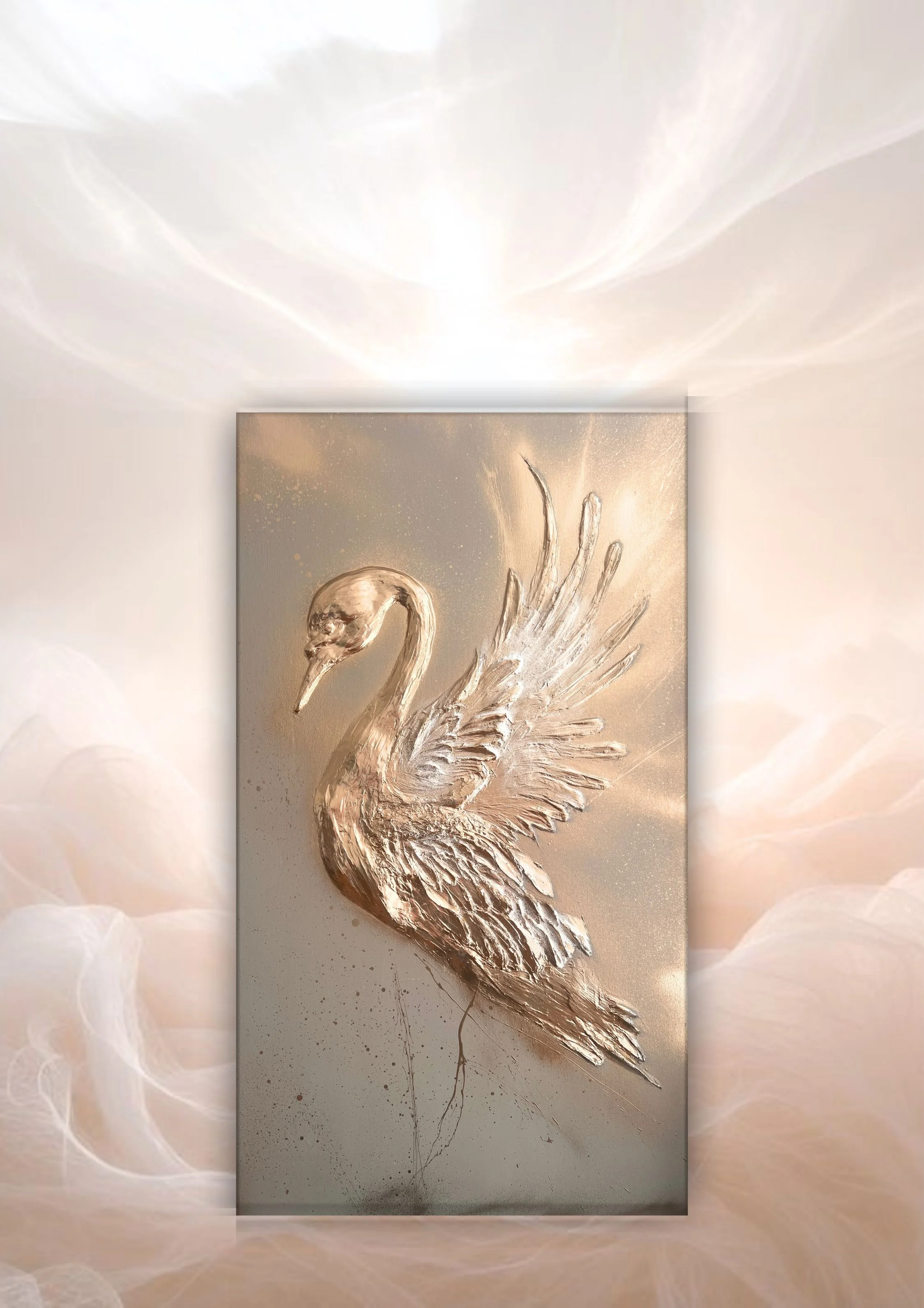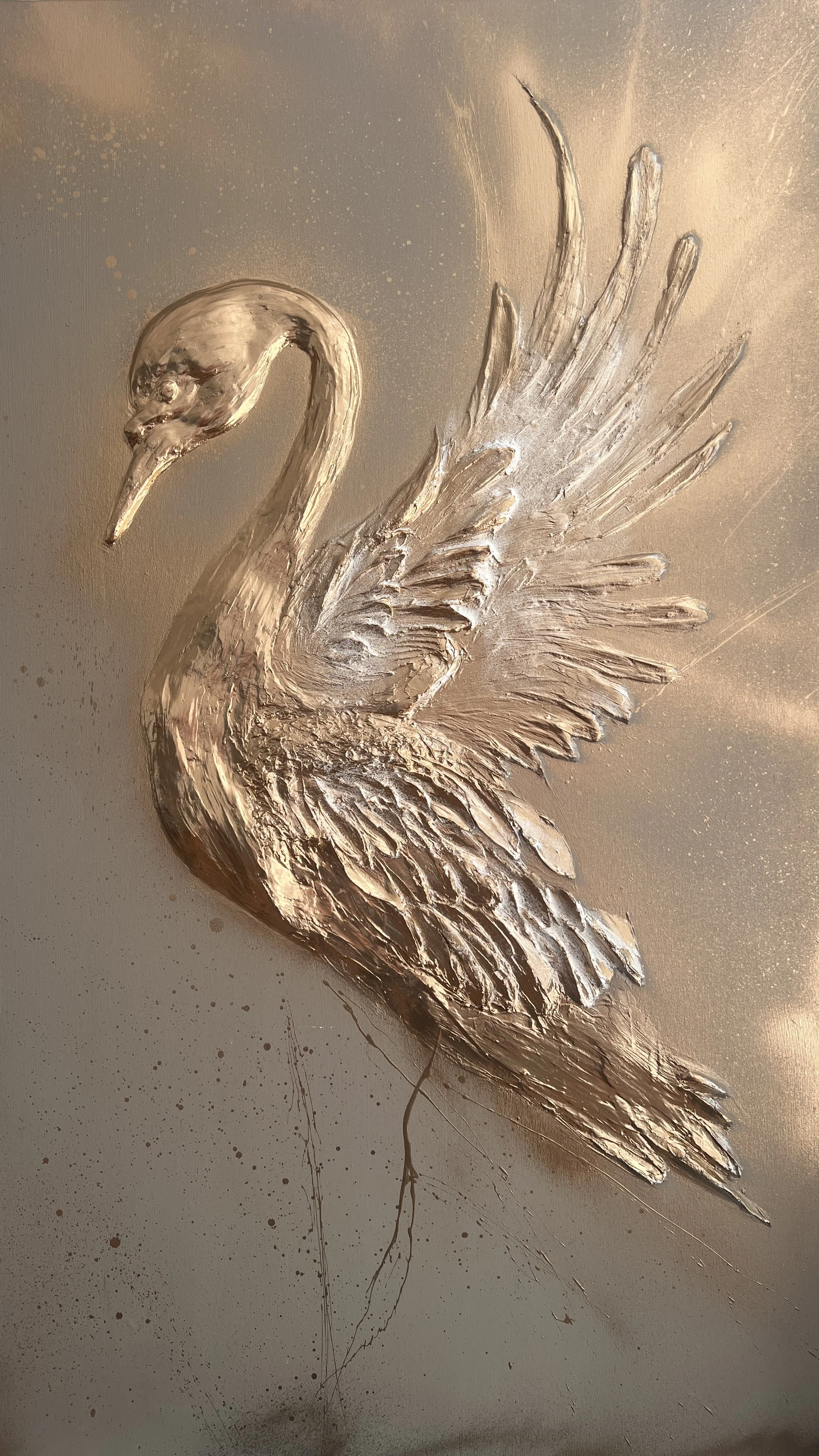 Kombinovaná technika, akryl, metalic gold sprej, signováno na rubové straně, lakováno UV lakem Schmincke (DE)