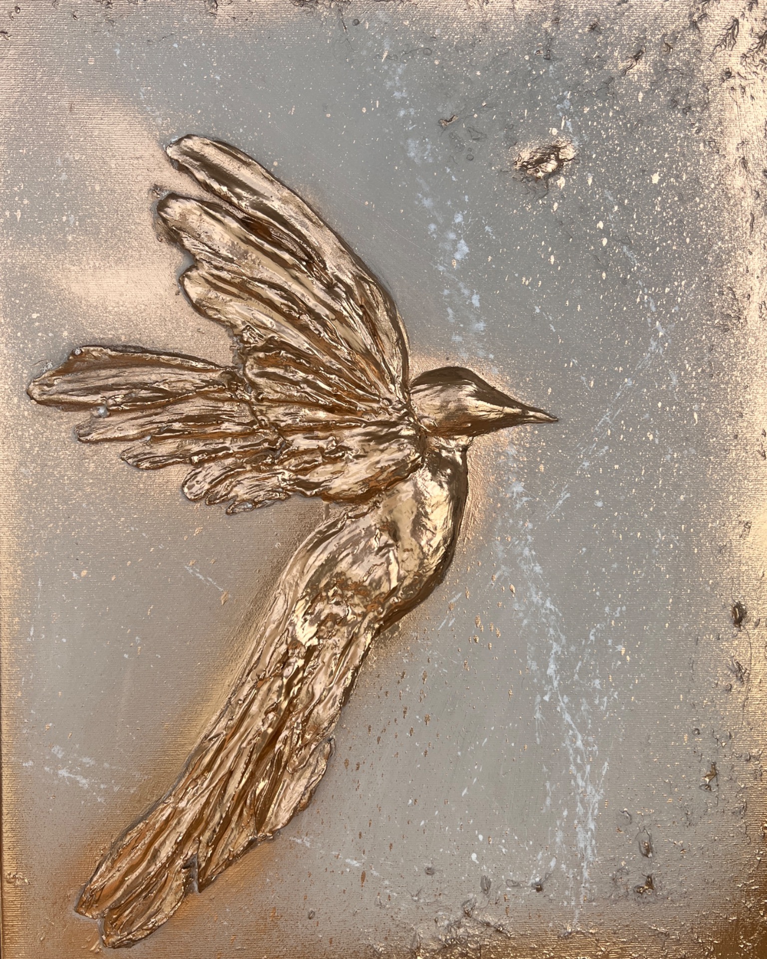 Kombinovaná technika, akryl, metalic gold sprej, signováno na zadní straně, lakováno